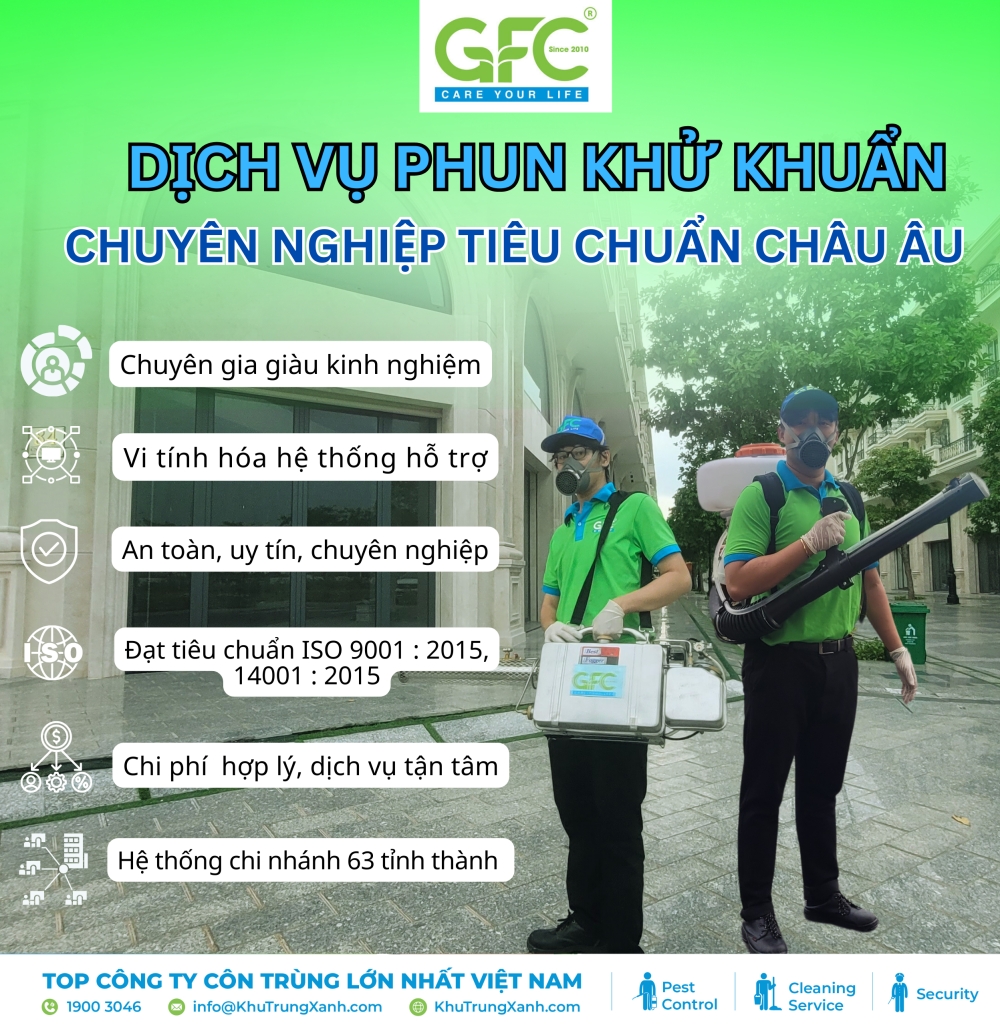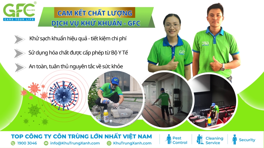 GFC giới thiệu giải pháp xử lý vệ sinh diệt khuẩn, là hoạt động nhầm bất hoạt hoặc giảm thiểu đáng kể mầm bệnh. Phương pháp xử lý này giúp tiêu diệt 99.99% vi khuẩn tồn tại trên bề mặt.