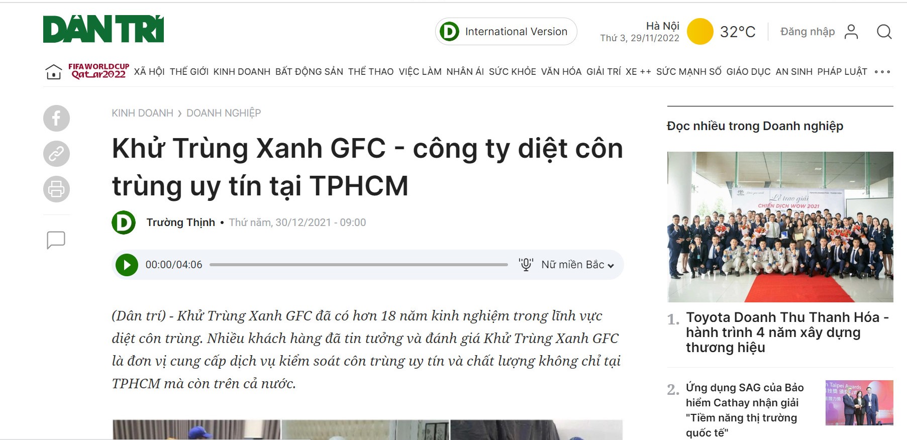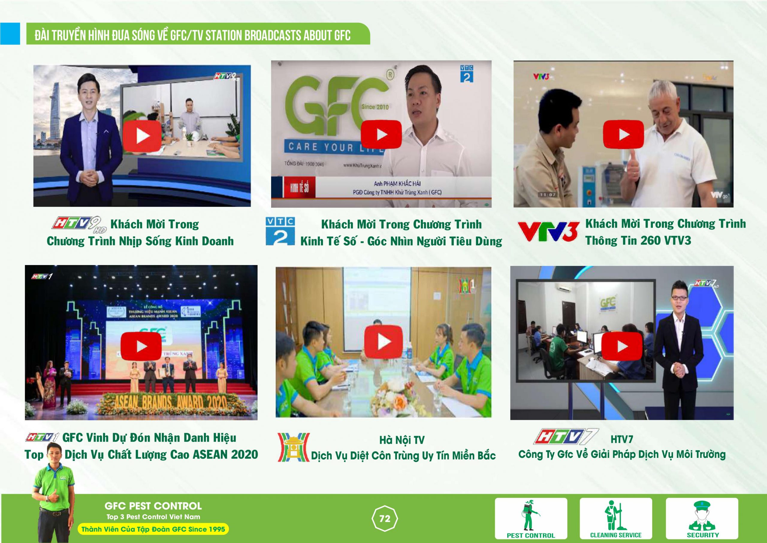 GFC là công ty diệt côn trùng uy tín hàng đầu Việt Nam, lọt TOP 50 thương hiệu mạnh uy tín ASEAN (Năm 2020) và thường xuyên được các báo chí, đài truyền hình Việt Nam đưa tin như: VTV, VTC, HTV, …